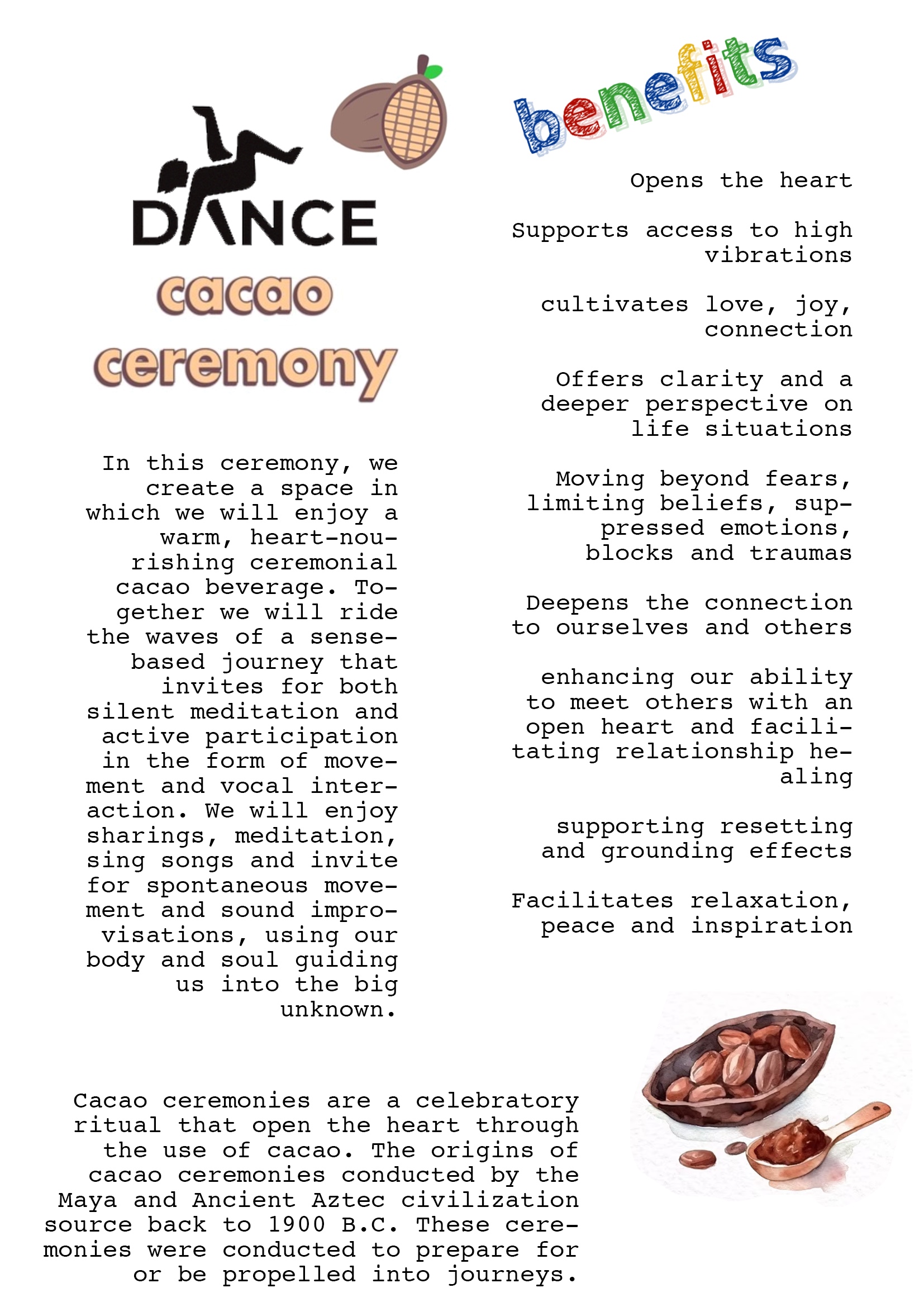 conscious clubbing April 1o * 7.15PM - 9.45PM downtown Aarhus @ Hjerterum / Denmark information play & contact April 19 * 2PM - 6PM downtown Aarhus @ Hjerterum / Denmark information conscious clubbing April 2o * 7.15PM - 9.45PM downtown Aarhus @ Hjerterum / Denmark information disney clubbing May 3 * 7.30PM - 9.45PM downtown Aarhus @ Hjerterum / Denmark information cacao clubbing (i.e. a cacao ceremony & contact impro) May 4 * 7PM - 9PM institut for x's yurt / Denmark information & benefits cacao clubbing (i.e. a cacao ceremony & contact impro) May 11 * 7PM - 9PM institut for x's yurt / Denmark information & benefits cacao clubbing (i.e. a cacao ceremony & contact impro) May 17 * 7PM - 9PM institut for x's yurt / Denmark information & benefits conscious clubbing May 19 * 7.15PM - 9.45PM downtown Aarhus @ Hjerterum / Denmark information cacao clubbing (i.e. a cacao ceremony & contact impro) May 24 * 7PM - 9PM institut for x's yurt / Denmark information & benefits conscious clubbing & community June 2o * 7.15PM - 9.45PM downtown Aarhus @ Hjerterum / Denmark information cacao clubbing (i.e. a cacao ceremony & contact impro) June 21 * 7PM - 9PM institut for x's yurt / Denmark information & benefits conscious clubbing & breathwork June 22 * 7.15PM - 9.45PM downtown Aarhus @ Hjerterum / Denmark information authentic relating & contact June 23 * 6.15PM - 8.45PM downtown Aarhus @ Hjerterum / Denmark information conscious clubbing June 27 * 7.15PM - 9.45PM downtown Aarhus @ Hjerterum / Denmark information meditation * nature * community (i.e. a day in nature in silence and community) June 28 * 1PM - 4.3oPM Risskov Hospitalspark / Denmark information & benefits cacao clubbing (i.e. a cacao ceremony & contact impro) June 28 * 7PM - 9PM institut for x's yurt / Denmark information & benefits forest bathing (i.e. a authentic relating & nature activities) June 29 * 1.3oPM - 5PM Risskov Hospitalspark / Denmark information NVC & contact June 29 * 7.15PM - 9.45PM